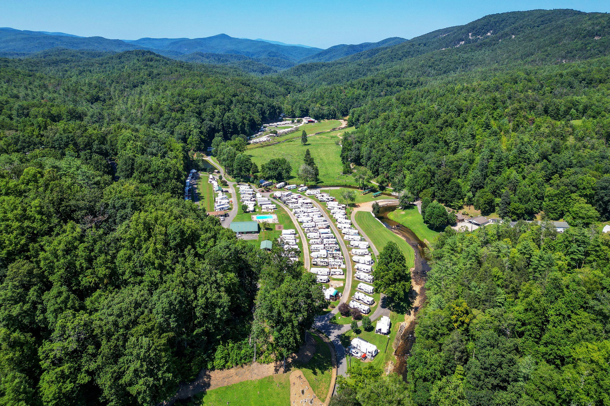 Discover the perfect blend of natural beauty, modern comfort, and family-friendly fun at Daniel Boone RV Resort. Nestled along the tranquil Upper Creek at the foothills of the breathtaking Blue Ridge Mountains, and just an hour drive to Pisgah National Forest, our resort is a haven for seasonal campers seeking relaxation and adventure.